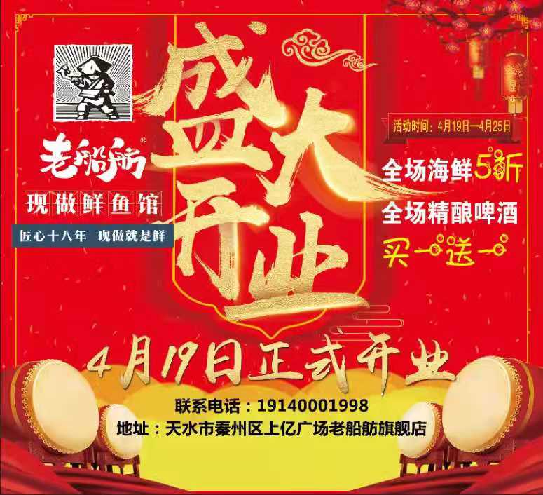 热烈祝贺天水老船坊鲜鱼馆开业